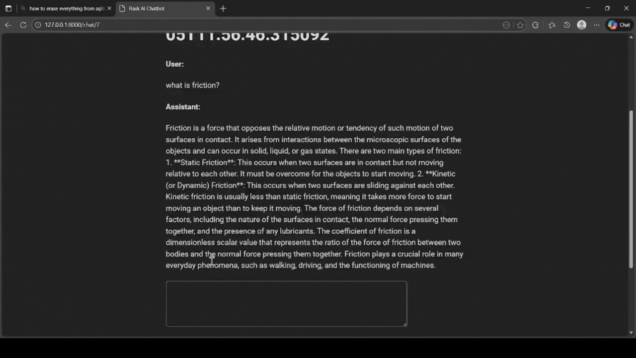 - 🗄️ Conversations persisted in SQLite via SQLAlchemy.