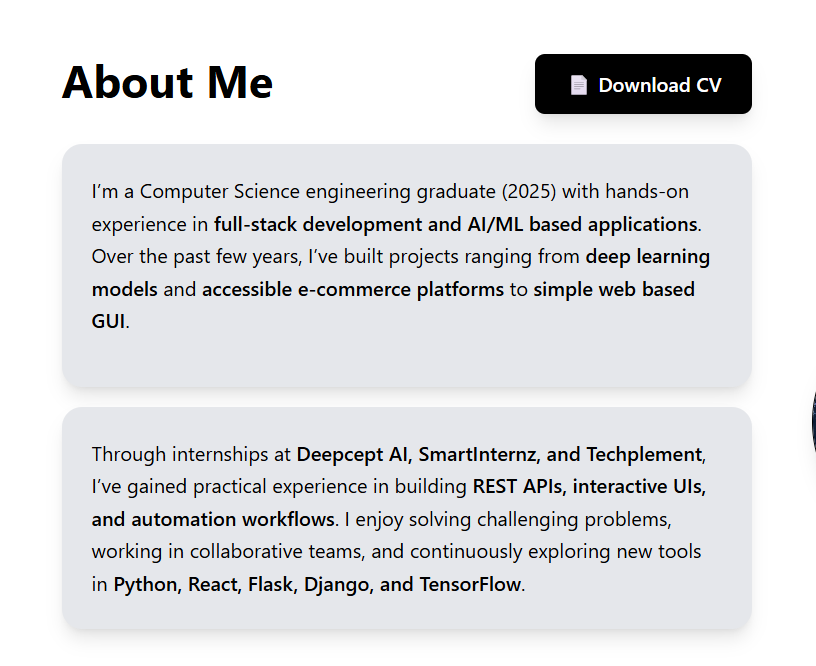 - 📂 Includes downloadable CV and contact links